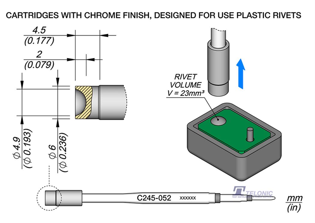 C245052 is a special cartridge with chrome finish for plastic rivets.