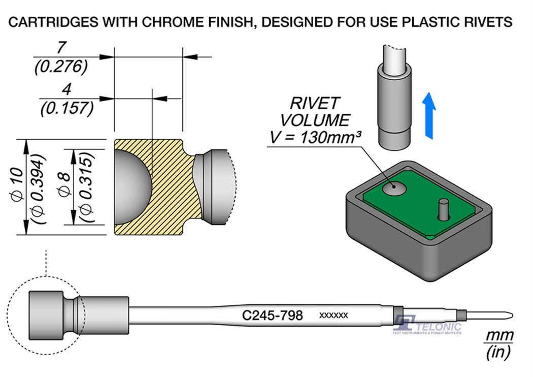 C245798 is a special cartridge with chrome finish for plastic rivets.