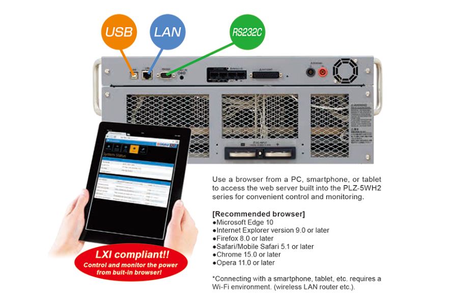 - Comes with LAN, RS232C and USB communication interfaces installed as a standard feature. *GPIB Option.