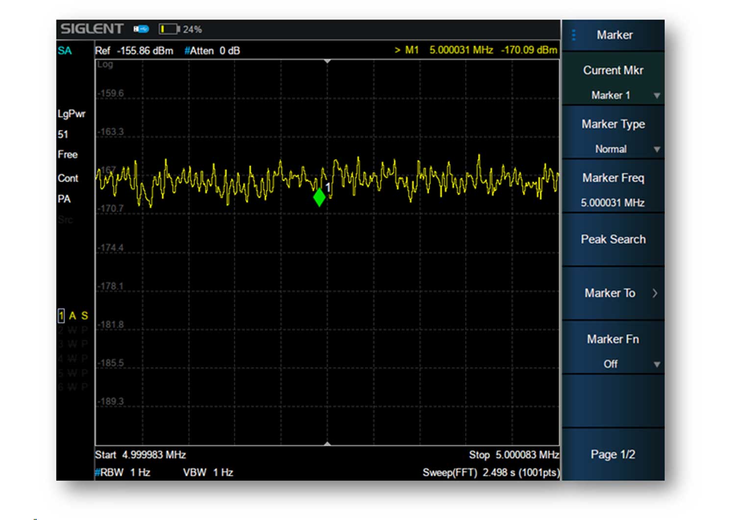 - Displayed Average Noise Level -165 dBm/Hz
