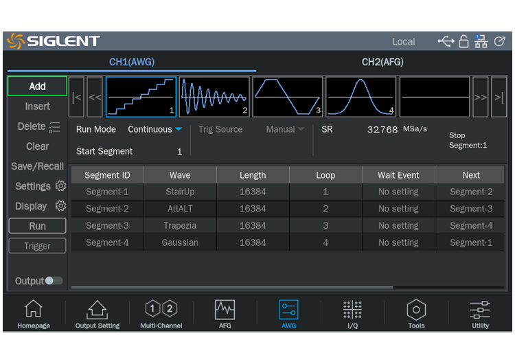 - Supports sequence wave playback function, with a maximum waveform memory per channel