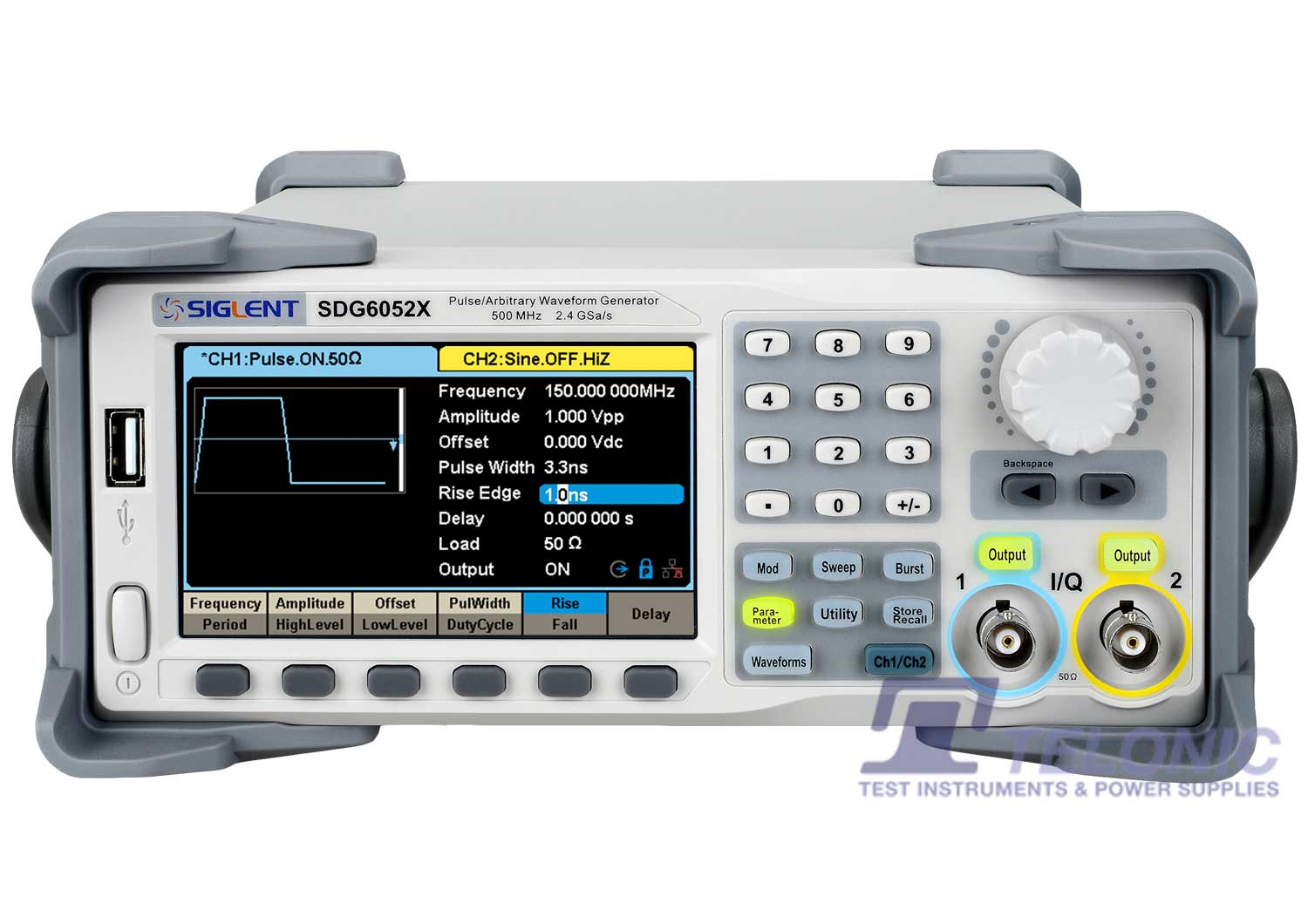 The SDG6022X is a 200MHz, 2CH Function Generator with a maximum sampling rate of 2.4GSa/s. Siglent’s SDG6000X is a series of dual-channel Pulse/Arbitrary waveform generators that feature up to 500MHz bandwidth, a maximum sample rate of 2.4 GSa/s and 16-bit vertical resolution. They also include proprietary TrueArb & EasyPulse technology that help to solve the weaknesses inherent in traditional DDS generators when generating arbitrary, square and pulse waveforms. In addition, the SDG6000X is a multi-function device which can generate Noise, IQ Signals and PRBS patterns. These features enable the SDG6000X to provide a variety of high fidelity and low jitter signals, meeting the growing requirements of complex and intensive applications.