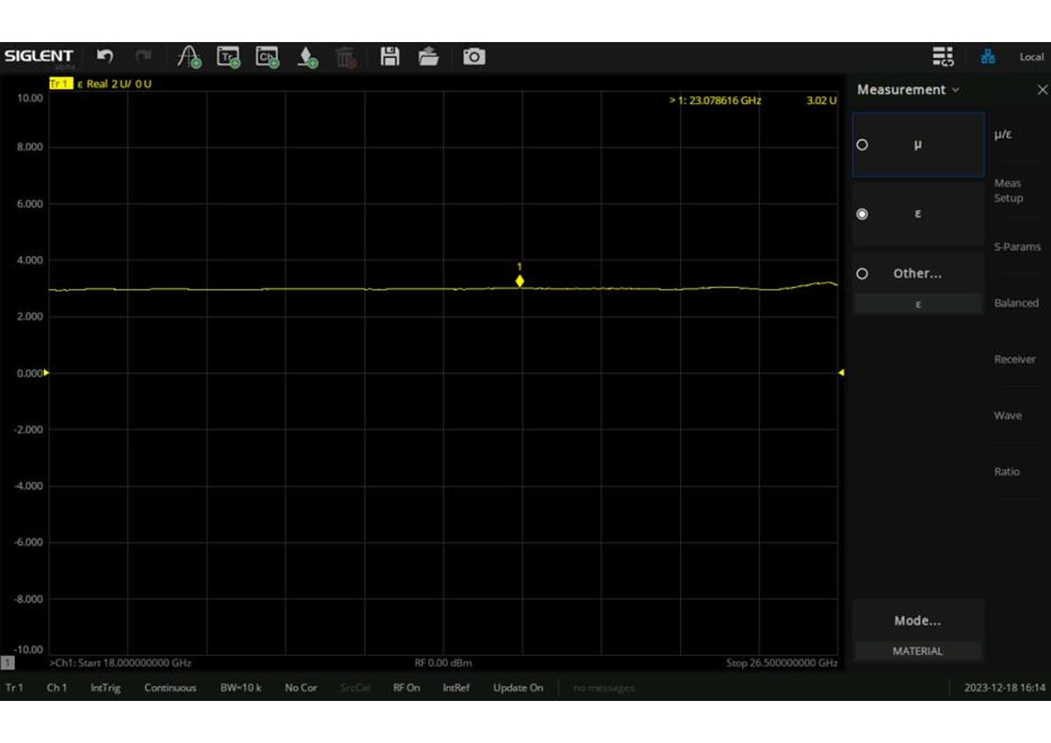 The SNA5000A-MT Material Measurement License is an optional feature for the Siglent SNA5000A series vector network analysers (VNA). This option enables advanced material measurements by analysing permittivity and permeability using waveguide-based techniques. By connecting a calibrated waveguide device to the VNA, users can measure S-parameters (S11, S21, S12, S22) and compute the complex relative permittivity and permeability of a sample. The system includes tools for waveguide TRL calibration, sample measurement setup, and gap correction, making it ideal for characterising dielectric and magnetic properties of materials.